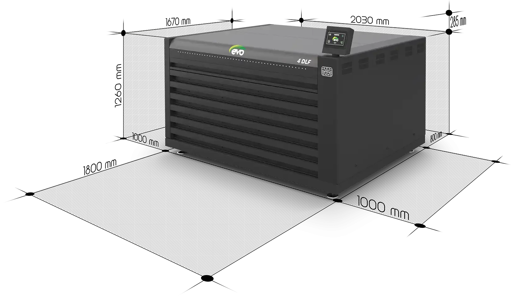 Industrial Wooden Crates are favoured if the system must withstand multiple transhipments during transport and is mandatory when shipped outside the continent. Dimensions: 195 x 278 x 193cm (76.8 x 109.5 x 76”)