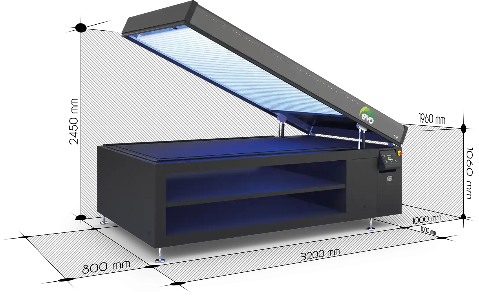 Vianord stand-alone traditional clamshell exposure system utilises standard UVA tubes paired with advanced cooling technology for precise and efficient temperature control, resulting in a reliable and consistent exposure. For plates up to 132 x 203 cm (52 x 80 inches)