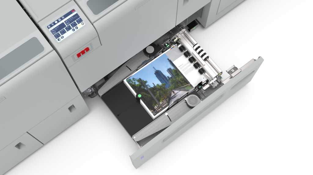 The Finishing module now places both SquareFold and Face Trim capabilities in one single module – and comes as standard. It adds the finishing touch with a square folded edge and printable spine. Gives booklets the professional look of a perfect bound book.