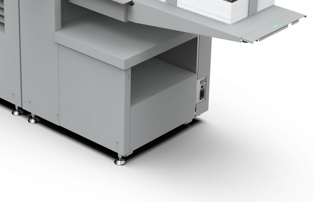 The Morgana DigiFold Ultra’s two-in-one stacker combination lets you switch between folded and non-folded jobs from the user interface, no need to reconfigure the machine. Full Bleed Trimmed, non-folded jobs will come out on the lower stacker for non-folded sheets.